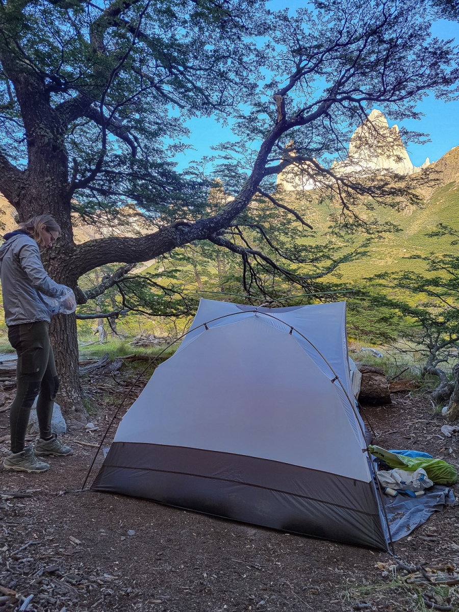 Hele natten ruskede teltet og mikroskopisk støv blev presset gennem teltets stof og den lille åbning Martin havde ladet stå åben ved en fejl. Alt var støvet til, da vi vågnede næste morgen. Med endnu et kig på vejrudsigten og op på passet blev vi enige om at pakke sammen og vandre de cirka 30km ned til El Chaltén. Vi havde ikke mad nok i taskerne til at vi kunne vente på at stormen ville lægge sig.