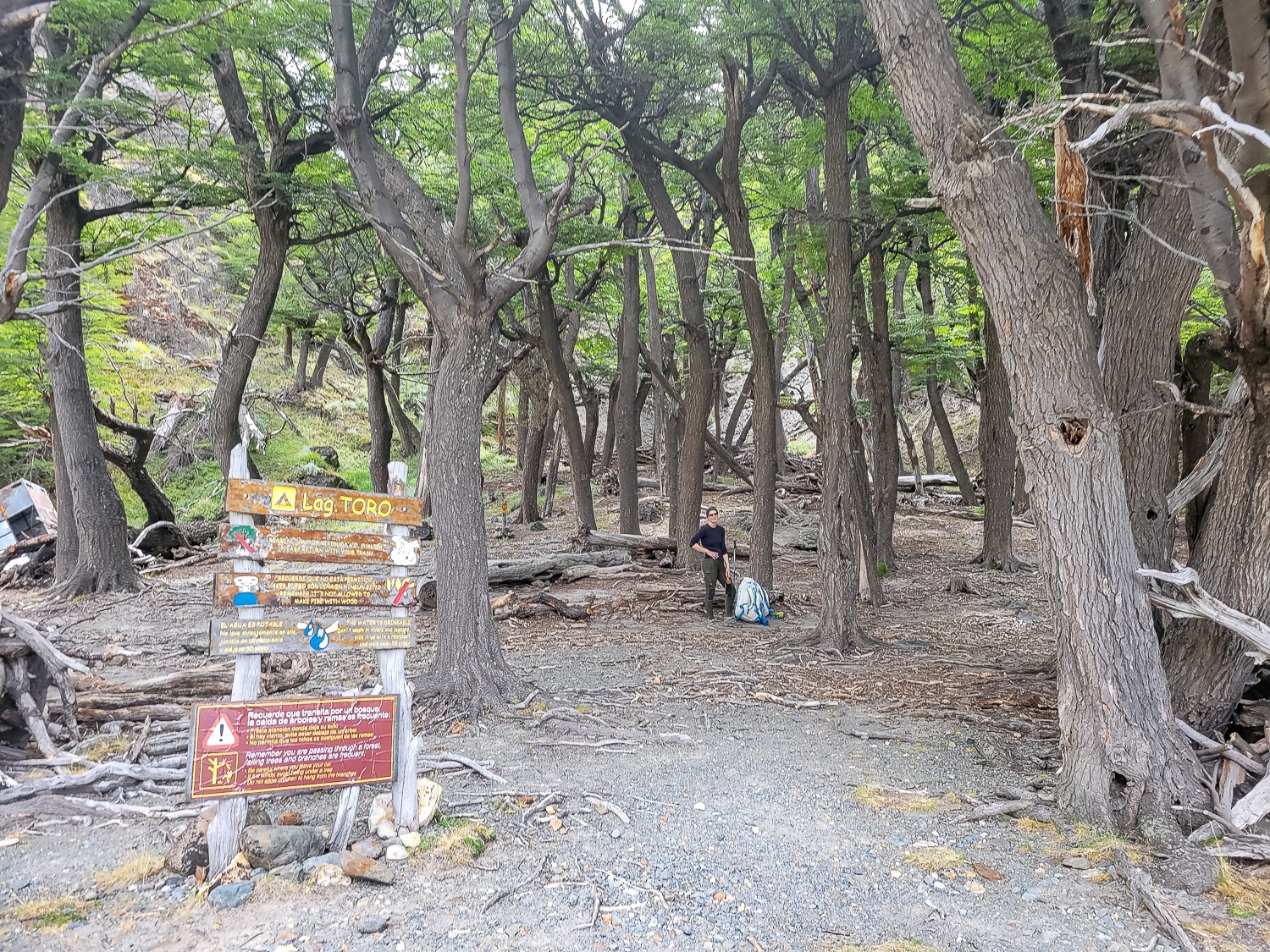 Vejen mod Cerro Torre næste dag var mere flad og nænsom ved vores trætte ben. En tur med bjergsøer og gennem små stykker skov med skygge fra den varme sol. Vi havde læst, at der var en lille butik i rangernes lejr, men da vi kom frem, var alt lukket og mere forladt end vi havde regnet med.