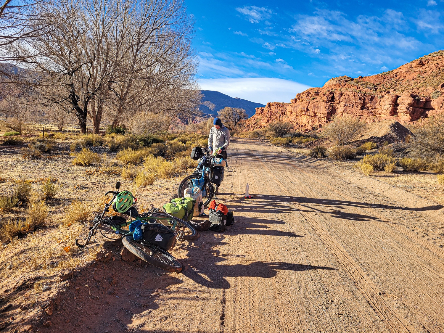 Herfra skulle vi igen op over 4800moh men med en lang stigning og stærk modvind det var en kold og hård dag. Katja punkterede om morgenen i modvind og -12 grader puha Martin var ikke superglad for at skulle lappe dæk der.