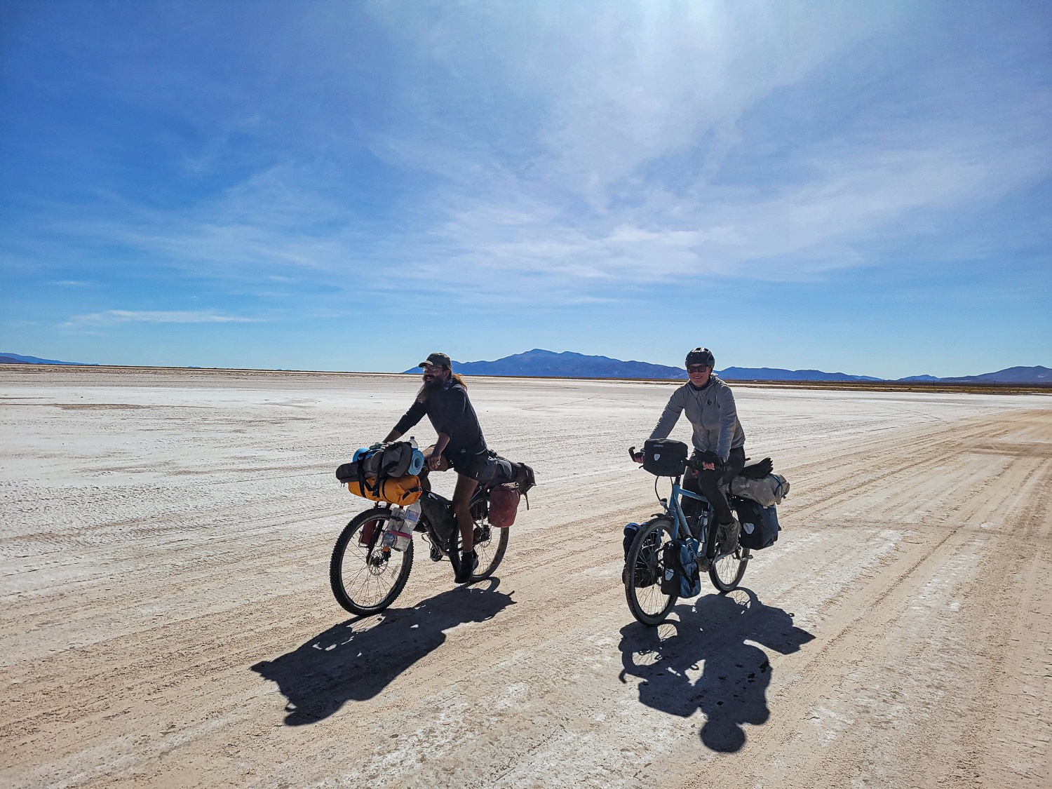 Så skulle vi ned mod Argentinas saltsøer og videre mod vest her fandt vi asfalt igen, men også vores gamle ven – den stærke vind fra vest. Det krævede nogle dages cykling i stærk modvind mod grænsebyen Jama, hvor vi måtte sove i ruiner for at finde læ for vinden. Men heldigvis fik vi en vindstille dag mod byen Jama. Her havde vi forventet at tage en hviledag og Jace ville cykle alene videre. Men det viste sig at være en by uden noget som helst og de steder vi kunne have boet var optaget af arbejdere. Så vi fandt en forladt bygning og slog teltet op der.