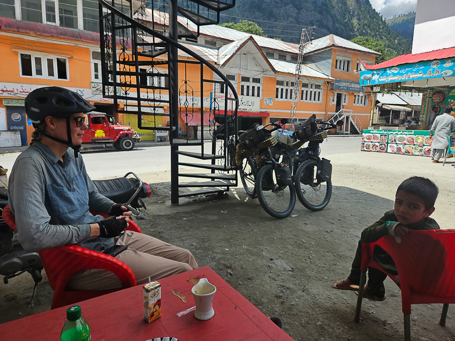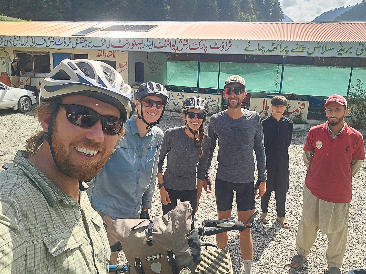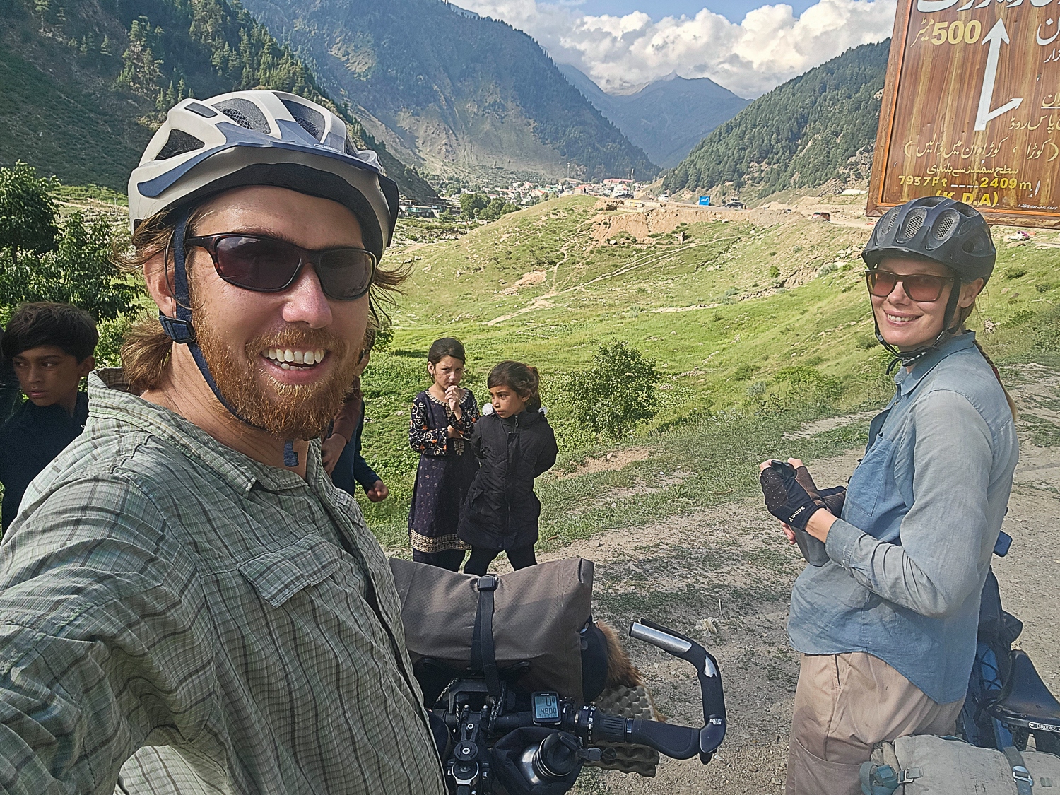 Politieskorten skifter for hver politikreds, og da vi ankommer til byen Naran, bliver vi taget ekstra godt imod. Politiet indlogerer os på et hotel, hvor vi kan bo gratis. Som sædvanligt, når vi tager afsked med politimændene, bliver vi bedt om at tage en selfie eller optage en video, hvor de spørger os hvad vi synes om Pakistan. Et par dage senere er vi blevet en anelse trætte af politiet, som ihærdigt har forsøgt at få os af cyklerne og ind i deres minibus, så de i stedet kunne køre os til næste politidistrikt. Denne dag er vi ekstra irriterede, fordi politimanden ikke ville lade os stoppe og spise frokost; sultne cyklister, der lige har cyklet over et 4200 meter højt bjergpas, er ikke at spøge med. Heldigvis ankommer vi til Chilas og dermed grænsen til distriktet Gilgit-Baltistan, hvor politieskorten stopper. Dagen efter cykler vi videre nordpå på egen hånd.
