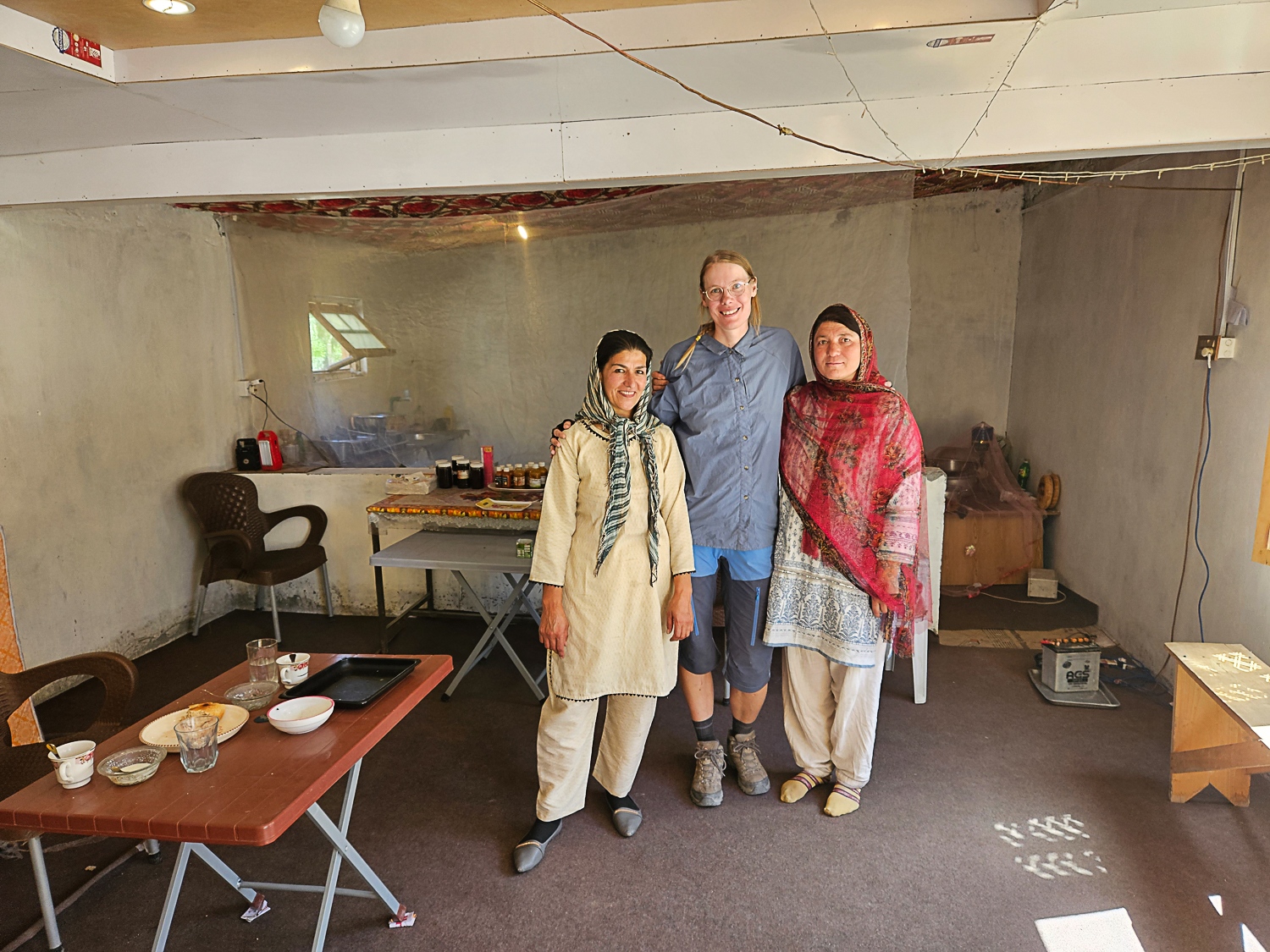 Hunza dalen er anderledes, noget særligt. Det siger alle vi taler med op gennem Pakistan. En velkendt myte går på, at Hunza-folket er så tilfredse med livet, at de har verdens højeste gennemsnitlige levealder. Kvinderne går frit på gaden med løst hår, og de arbejder i marken. En kontrast til store dele af resten af landet, hvor kvinderne primært er i hjemmet. Vi har indtil nu set få kvinder i gadebilledet og det offentlige rum. Ja, Hunza dalen er anderledes, og vi sænker både skuldrene og tempoet. Regnen siler fortsat ned, så vi tager to hviledage i Karimabad og venter på, at det klarer op. Vi går en tur til nabobyen Altit og bliver inviteret på te hos en lokal familie. De plejer at bo i et af mudderhusene i den gamle bydel, men har bygget et nyt hus i udkanten af byen med penge, som faderen har tjent på at arbejde i Saudi Arabien. Huset er bygget på den grund, hvor de tidligere havde have, men de har dog stadig æble- og abrikostræer, og vi får to poser æbler og en pose tørrede abrikoser med til vores videre færd.