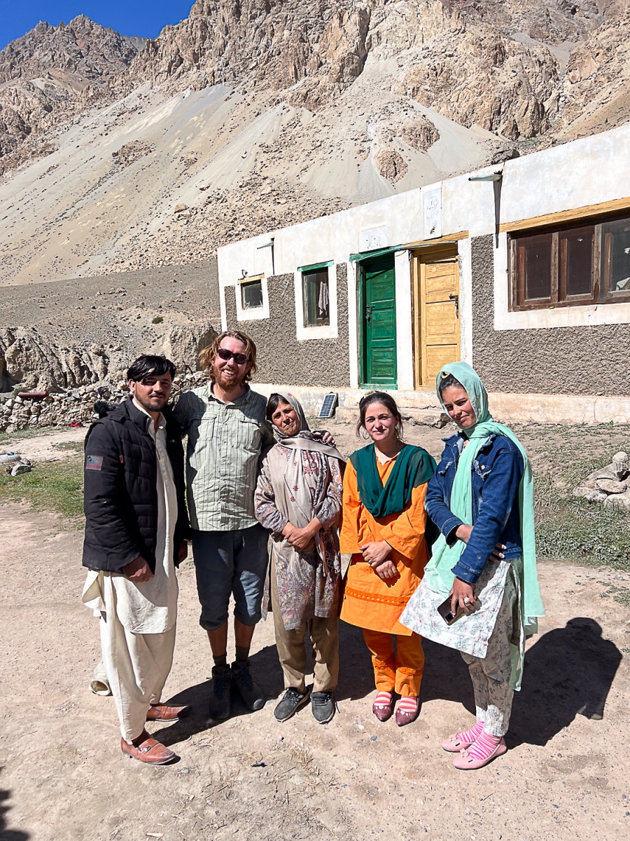 I 2018 vandrede Martin ud i Wakhan Korridoren i Afghanistan i 12 dage med 40 kilo udstyr og mad i rygsækken. Så da vi ser på kortet, at Chapursan dalen fører os meget tæt på det sted i Afghanistan, han har vandret, beslutter vi os for at cykle derud. Vi cykler afsted fra Sost, grænsebyen til Kina, og ud ad grusvejen, der skal tage os ud i dalen. De første 40 kilometer er vi omgivet af høje klippevægge på begge sider, og vi må tage en omvej for at undgå et stenskred, hvor sten på størrelse med fodbolde ruller ned ad klippeskrænten, ud på vejen og ned i floden. Efter de 40 kilometer begynder vi at forstå, hvorfor Chapursan oversættes ”dalen, der har alt” på det lokale sprog Wakhi. Vi cykler forbi hyggelige landsbyer, grønne oaser i det ellers golde terræn, hvor livet stadig leves meget traditionelt, og alle er ude i marken for at høste. I landsbyen Kirmin ligger et te-hus, hvor vi køber te, hjemmebagt brød og frisklavet yoghurt. Rashmina og hendes søster ejer caféen, og det er usædvanligt at kvinder ejer forretninger, selv i Hunza dalen. Om eftermiddagen ankommer vi til den sidste landsby i dalen, Zodkhun, som på Wakhi betyder ”det første hus”. Det har – historisk set – været det første hus, fordi man tidligere ankom til dalen fra den afghanske side. Men i mange år har grænsen været lukket for andre end de lokale, og for to år siden blev grænsen også lukket for dem. Wakhi folket er spredt udover Afghanistan, Pakistan, Tajikistan og Kirgistan, og udover at være afkoblet fra sit folk, giver grænselukningen problemer i Chapursan dalen. Her græsser nu flere tusinde yak-okser, som plejede at græsse i Afghanistan om sommeren. ”Nu æder okserne vores afgrøder i og omkring landsbyerne” fortæller Alam Jan, der ejer gæstehuset Pamir Sarai i Zodkhun. Vi føler os hurtigt trygge ved Alam, som taler flydende engelsk, og har arbejdet med turister i mere end 30 år, men det viser sig at han har en mørk fortid. Han er ligesom os en eventyrlig sjæl, og har blandt andet rejst på yak-okse gennem Afghanistan til Tajikistan og Pakistan. Vi bor hos Alam og hans familie i to dage, og bruger hviledagen på at cykle 20 kilometer længere ind i dalen mod grænsen til Afghanistan til det hellige sted Baba Ghundi, hvor mange pilgrimme kommer.